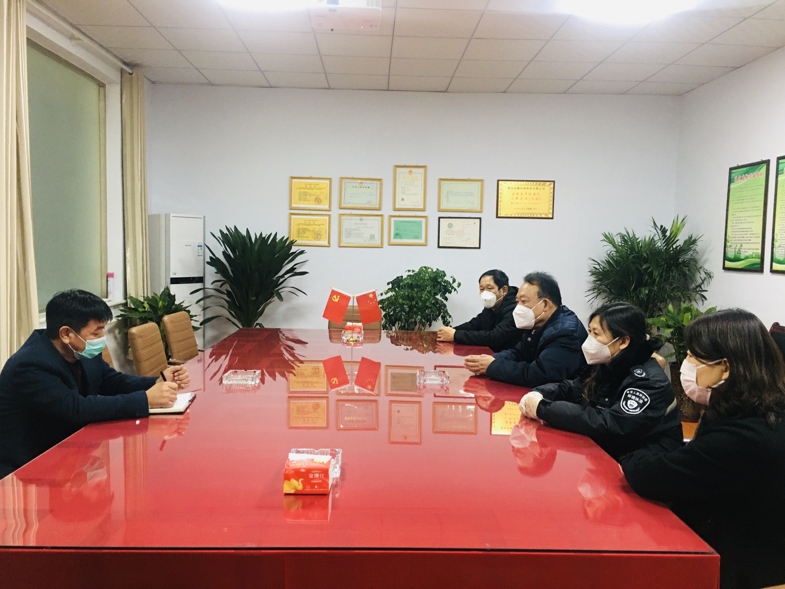 2月10日下午,邢台市生态环境局疫情防控小组办公室主任、副调研员国栋民,固废科科长杨冬梅和广宗县分局局长张志坚等人员先后来到我公司办公区、医疗垃圾处理区、车辆运输区、后勤保障区检查疫情防控落实工作,对疫情期间坚守岗位的征海人进行慰问,并给我们带来了消毒液、方便面等物资。